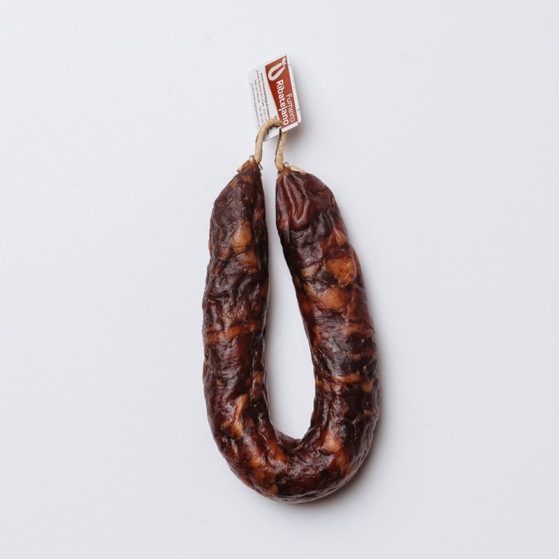Enchido elaborado a partir de carne de porco com gordura de primeira qualidade, vinho tinto (contem sulfitos), sal, massa de alho e especiarias. Procede-se ao seu enchimento com tripa salgada de bovino e posteriormente é colocado em fumeiro de lenha de sobro.